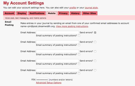 Then string together your account name with your pint in the following form: username+pin@post.dreamwidth.org.