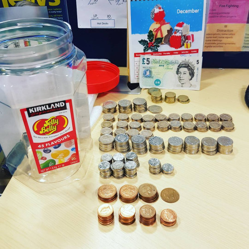 One year of Simon’s swear jar….minus the £200 donated to charity…. (at Investors in People Scotland)